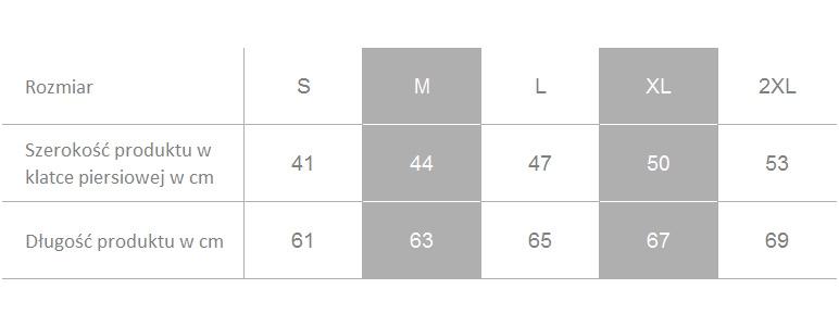Podajemy uśrednioną wagę produktu, zwykle dla rozmiaru L. Waga innych rozmiarów, szczególnie rozmiarów dużych może znacznie odbiegać od podanej wartości. koszulki: ok. 160 g