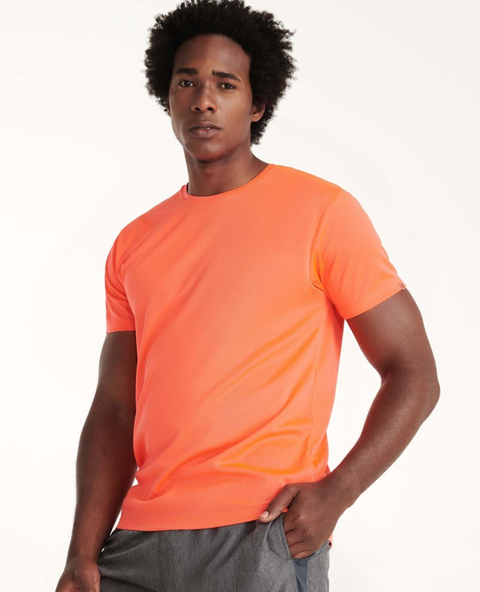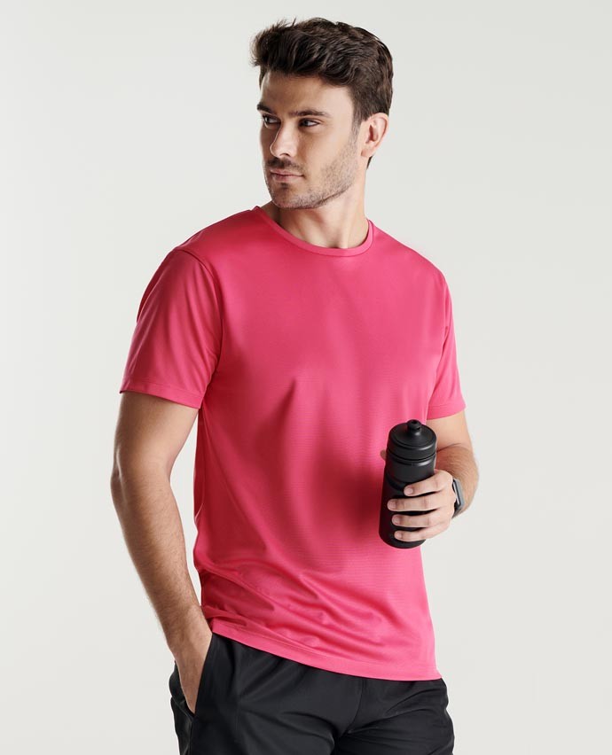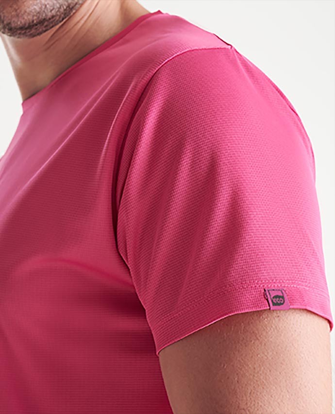 Męska koszulka ROLY® bardzo dobrze radzi sobie z kontrolą wilgoci, oddycha i szybko schnie. Jest to możliwe dzięki zastosowaniu poliestrowej dzianiny o wafelkowym splocie typu interlock. Połowa wykorzystanego poliestru pochodzi z recyklingu. T-shirt ma krótkie rękawy, wszyte prosto płaskimi ściegami. Na krawędzi lewego rękawka umieszczono metkę ECO, nawiązującą do materiału z recyklingu użytego do produkcji koszulki i jej opakowania. Ten techniczny T-shirt doskonale sprawdzi się w sporcie i w trekkingu, przyda się również w upalne dni w turystyce miejskiej. Hiszpańska marka ROLY® przestrzega wysokich standardów produkcji i oferuje odzież wysokiej jakości.